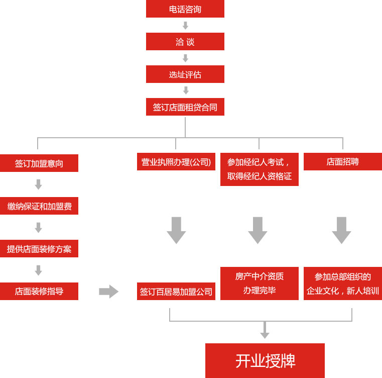 我们拥有专业的市场分析研究体系,可为加盟商提供详尽的市场调研报告,增强加盟商对市场和客户了解,促进房地产交易的顺利进行。我们创建新营销模式、整合渠道,为各连锁店提供新房销售房源,创造更多的利润机会、利润增长点,专业的营销代理公司居易行提供强大后台服务、技术支持! 客户服务支持 百居易总部管理团队为加盟商全心服务,提供从"从摇篮到成长"诚心服务,通过下店访谈、组织经验交流会、定期/不定期的店面交流会以及各类拓展活动听取店面意见反馈,及时根据一线反映的问题,进行调整,保证加盟商的意见都能得到合理的解决。